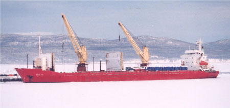 Le 30 novembre 2005, le cargo polyvalent Skalva charge des lingots de plomb à Londres au Royaume-Uni. Des fardeaux de bois d'œuvre résineux séché au four sont chargés par dessus les lingots à divers ports de la région de la Baltique. Le 16 décembre 2005, le Skalva appareille de Frederika au Danemark pour se rendre à Gaspé (Québec) avec un chargement de pales d'éoliennes et un moule à pales par dessus les fardeaux de bois.