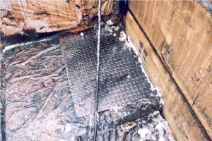 Le soudeur place une plaque d'aluminium de 60 cm sur 40 cm sur le fardeau de bois sous le lieu du soudage pour protéger la marchandise (voir photo 2). Un coussin de laine isolante est utilisé pour combler le vide entre les fardeaux, et deux manches d'incendie ainsi qu'un extincteur à poudre chimique sont placés à proximité.