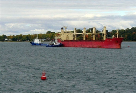 Le fond marin se compose de boue, d'argile et de roc. Le navire s'est échoué environ à partir de la cale 2 jusqu'à la section arrière de la cale 5, sans gîte. Le tirant d'eau, après l'échouement, était de 8,10 m à l'arrière et de 7,40 à l'avant. Ni le gouvernail, ni l'hélice n'ont touché le fond. Le 8 octobre, le navire a été remis à flot au moyen de 3 remorqueurs. Une inspection sous-marine subséquente a permis de déceler les dommages suivants :