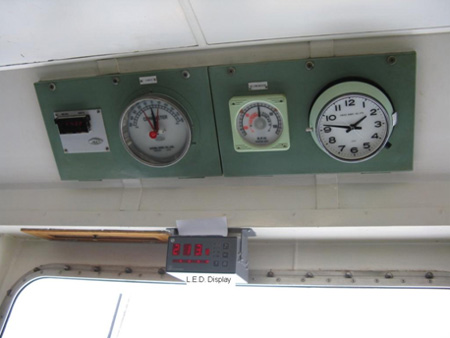 En 2005, on a installé un nouveau gyros-compas numérique et un convertisseur synchronumérique à bord du PetersfieldNote de bas de page 18. On a conservé le gyro-compas analogique original et on a installé un interrupteur permettant de choisir l'un ou l'autre des deux gyro-compas. À l'exception du répétiteur numérique installé à l'avant de la passerelle, qui a aussi été remplacé, on a conservé les 4 anciens répétiteurs analogiques (un sur chaque aileron de passerelle, le répétiteur à affichage à DEL, et un autre au poste de barre).