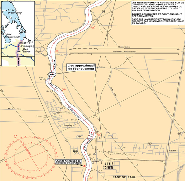 Dans le cas du présent événement, le navire se trouvait dans la rivière Rouge, à proximité de Winnipeg. Le capitaine était donc tenu de signaler l'échouement soit à la GRC, soit à la GCC. Le représentant du propriétaire a plutôt demandé de l'aide au surintendant de l'écluse St. Andrews 1 heure après l'événement. Le surintendant a alors communiqué avec la GCC, qui a ensuite informé la GRC. La GRC et la GCC ont éventuellement réussi toutes deux à entrer en communication avec le navire pour déterminer la nature de l'événement et l'assistance requise.