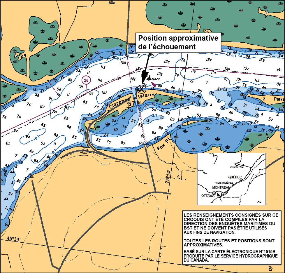 Dans le cas présent, aucun appel 9–1–1 n'a été fait et les SCTM n'ont pas été informés de la situation. La Police provinciale de l'Ontarioeffectuait une vérification routière de routine et a été informée de l'incident par l'épouse du conducteur du traversier. La Police provinciale de l'Ontario a communiqué avec le BST et le centre conjoint de coordination de sauvetage (JRCC) de Trenton. Contrairement aux exigences de la réglementation, TC n'a pas été informé de l'échouage au moment de l'incidentNote de bas de page 20.