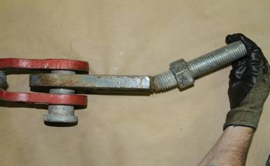 L'examen sur le terrain du dispositif d'ancrage sur la rive sud (à l'île Clarence), du côté ouest du traversier, a montré que ce dispositif avait également été exposé à des tensions élevées. La tige filetée du dispositif d'ancrage avait été courbée et la plaque de fixation, fabriquée à partir d'une plaque de métal épais, s'était déformée plastiquement en direction de la rivière.