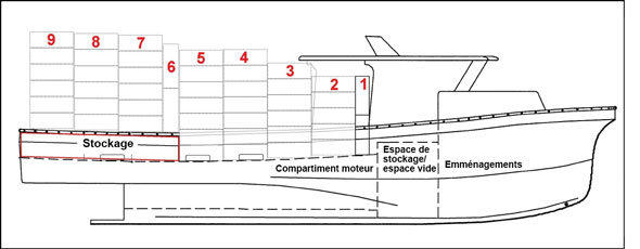 | Configuration théorique – Bateau non ponté | Chargement lors de l'événement | Chargement type |