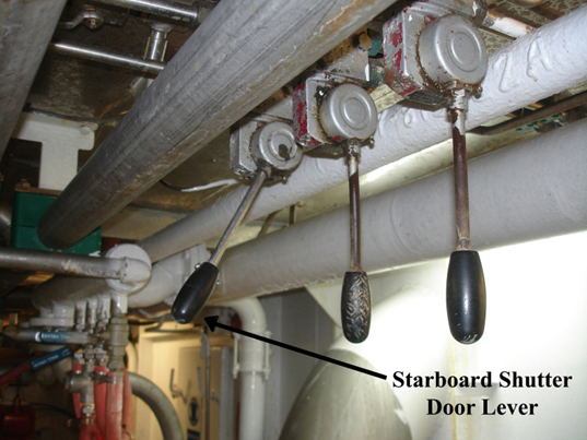 Par conséquent, après avoir été poussé à la position de fermeture puis relâché, le levier n’est pas revenu automatiquement à la position neutre. En revanche, après avoir été actionné dans le sens de l’ouverture, il est effectivement revenu à la position neutre, comme prévu. La procédure normale de signalement d’un défaut de ce genre consistait à informer verbalement le superviseur immédiat, qui, à son tour, informerait les mécaniciens. Ces derniers traiteraient le défaut immédiatement ou rempliraient un bon de travail pour obtenir du soutien une fois à terre. La défectuosité continue du levier n’a pas été signalée aux mécaniciens du bateau ni à la direction à terre et elle n’a donc pas été corrigée ni à bord, ni à terre. Certains membres d’équipage étaient au courant du problème depuis plus de six mois.