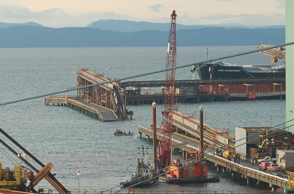 Le terminal a été lourdement endommagé. Une section de 128 m du pont sur chevalets (6 sections de piliers) menant au poste à quai no 1 s’est effondrée dans l’eau. Le convoyeur à charbon a été endommagé sur une longueur d’environ 145 m (photos 3 et photos 4). Les services alimentant le quai no 1 (y compris l’électricité et l’eau potable) ont été coupés au moment de la collision, ce qui a rendu le quai temporairement inutilisable. De plus, une certaine quantité de charbon, estimée à moins de 30 tonnes, est tombée dans l’eau.