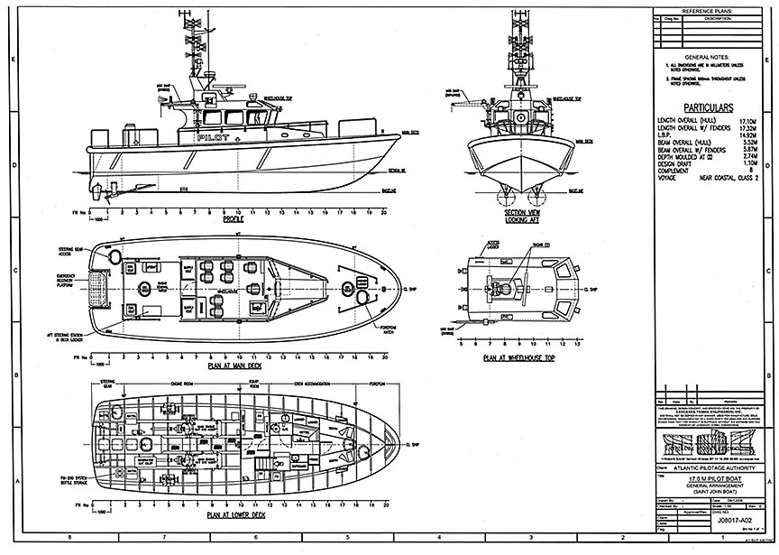 Le Captain A.G. Soppitt est un bâtiment spécial en aluminium, conçu et équipé pour transporter les pilotes (photo 1, annexe A). Sa coque planante est en V profond et à bouchains vifsNote de bas de page 2, et sa vitesse maximale est de 24 nœuds. La propulsion est assurée par 2 hélices à 5 pales de 89 cm de diamètre, chacune entraînée par un moteur diésel par l'entremise d'une transmission marine à engrenages fabriquée sur mesureNote de bas de page 3. Le bateau est muni de 2 gouvernails suspendus. Une série de 9 grandes fenêtres assurent la visibilité sur la passerelle.