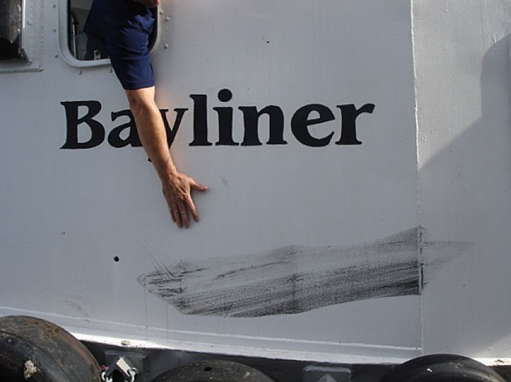 Les avaries subies par les 2 bâtiments se limitaient à des éraflures noires à l'endroit où il y avait eu contact avec les défenses en caoutchouc (photo 3 et photo 4).