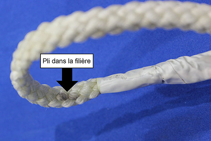 • Le tube de flottabilité supérieur présentait une déchirure longitudinale d'environ 30 cm de longueur tout près de son clapet de gonflage.