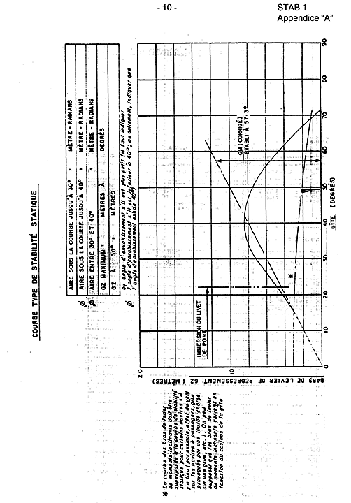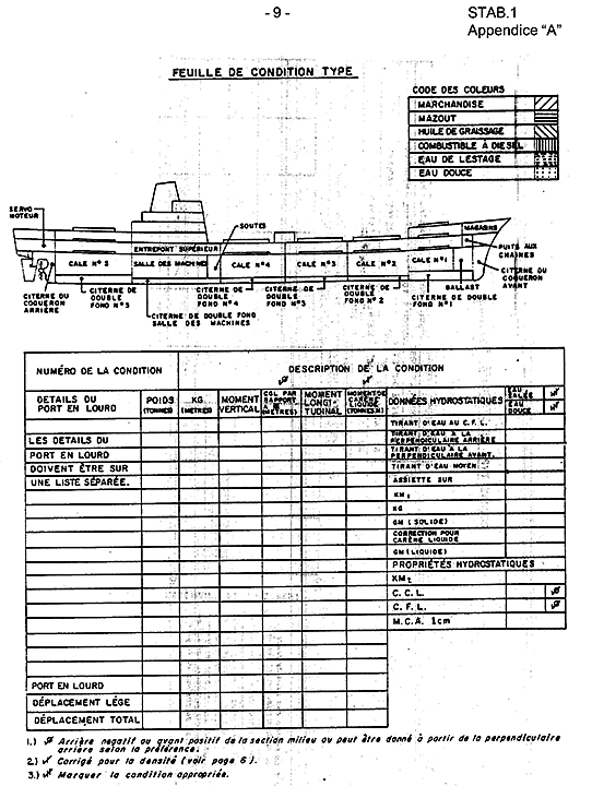 | Navire lège (1976) + poids présumés en condition de pleine charge selon le livret de stabilité (Le calcul de la stabilité initial date de 1976.) |