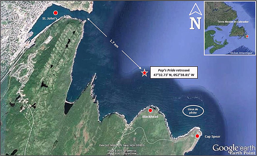 Le 6 septembre 2016, à 15 h 39, heure avancée de Terre-Neuve, on a signalé le retard à St. John's (Terre-Neuve-et-Labrador) du bateau de pêche Pop's Pride qui devait revenir du secteur de pêche au large du cap Spear avec 4 personnes à bord. Plusieurs bateaux ont pris part aux recherches. On a repêché les corps de 2 membres d'équipage qui portaient des vêtements de flottaison individuels; toutefois, la température de l'eau et la durée d'immersion des naufragés ont réduit leurs chances de survie. Le bateau submergé a été récupéré le lendemain. Les 2 autres membres d'équipage n'ont pas été retrouvés et sont présumés noyés.