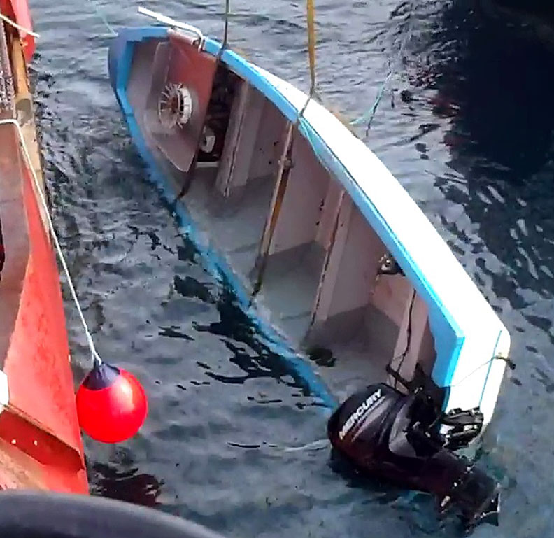 4. L'embarcation a été envahie par les eaux et a sombré; les 4 membres d'équipage se sont ainsi retrouvés dans l'eau.