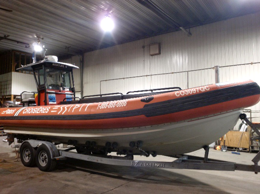 En 2008, le propriétaire a embauché une firme d'architecture navale pour évaluer la faisabilité de modifications à sa flotte d'embarcations à passagers pneumatiques à coque rigide. À cette occasion, un essai de stabilité initiale a été mené. Les modifications envisagées consistaient principalement à remplacer le moteur en-bord par 2 moteurs hors-bord. Ceci a permis de libérer de l'espace derrière le poste de conduite, qui a été reculé de 0,838 m (33 pouces). L'espace ainsi gagné à l'avant du poste de conduite a permis l'ajout d'une banquette supplémentaire pour transporter davantage de passagers.