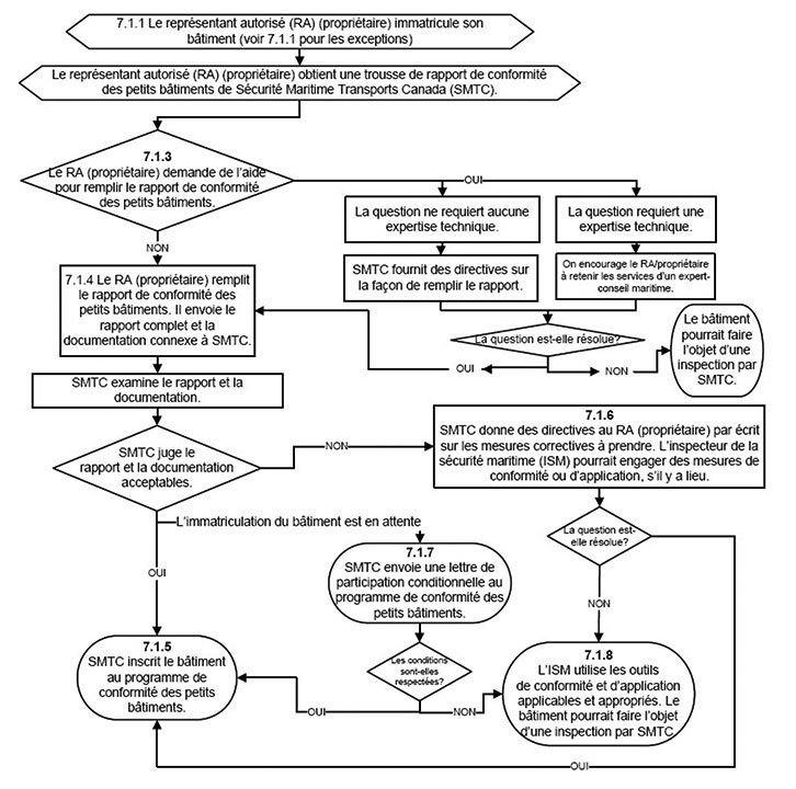 Le Programme de conformité des petits bâtiments (PCPB) est offert aux propriétaires de petits navires commerciaux. Ce programme volontaire de TC a pour objectif d'aider les propriétaires et les exploitants de petits navires à comprendre et à respecter leurs obligations en vertu de la loiNote de bas de page 20. L'inscription des petits bâtiments au PCPB se fait sur une base volontaire; il incombe entièrement au propriétaire du navire ou à son représentant autorisé (RA)Note de bas de page 21 d'assurer sa conformité aux exigences réglementairesNote de bas de page 22.