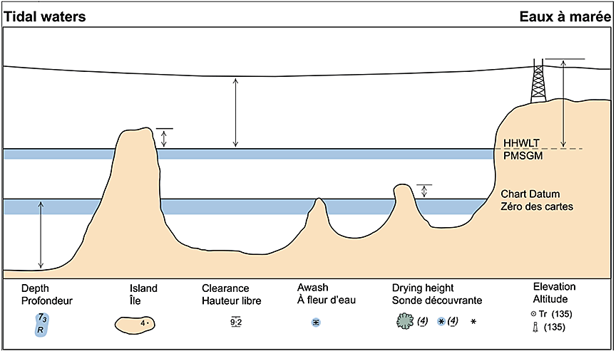 Au moment de l'échouement, la marée descendait et la hauteur se trouvait à environ 1,95 m au-dessus du zéro hydrographiqueNote de bas de page 13.