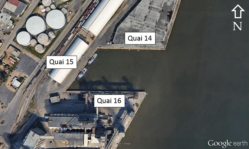 Annexe B – Vue aérienne du lieu de l'événement montrant le bassin où se trouvent les quais 14, 15 et 16 du port de Trois-Rivières (Québec), Canada
