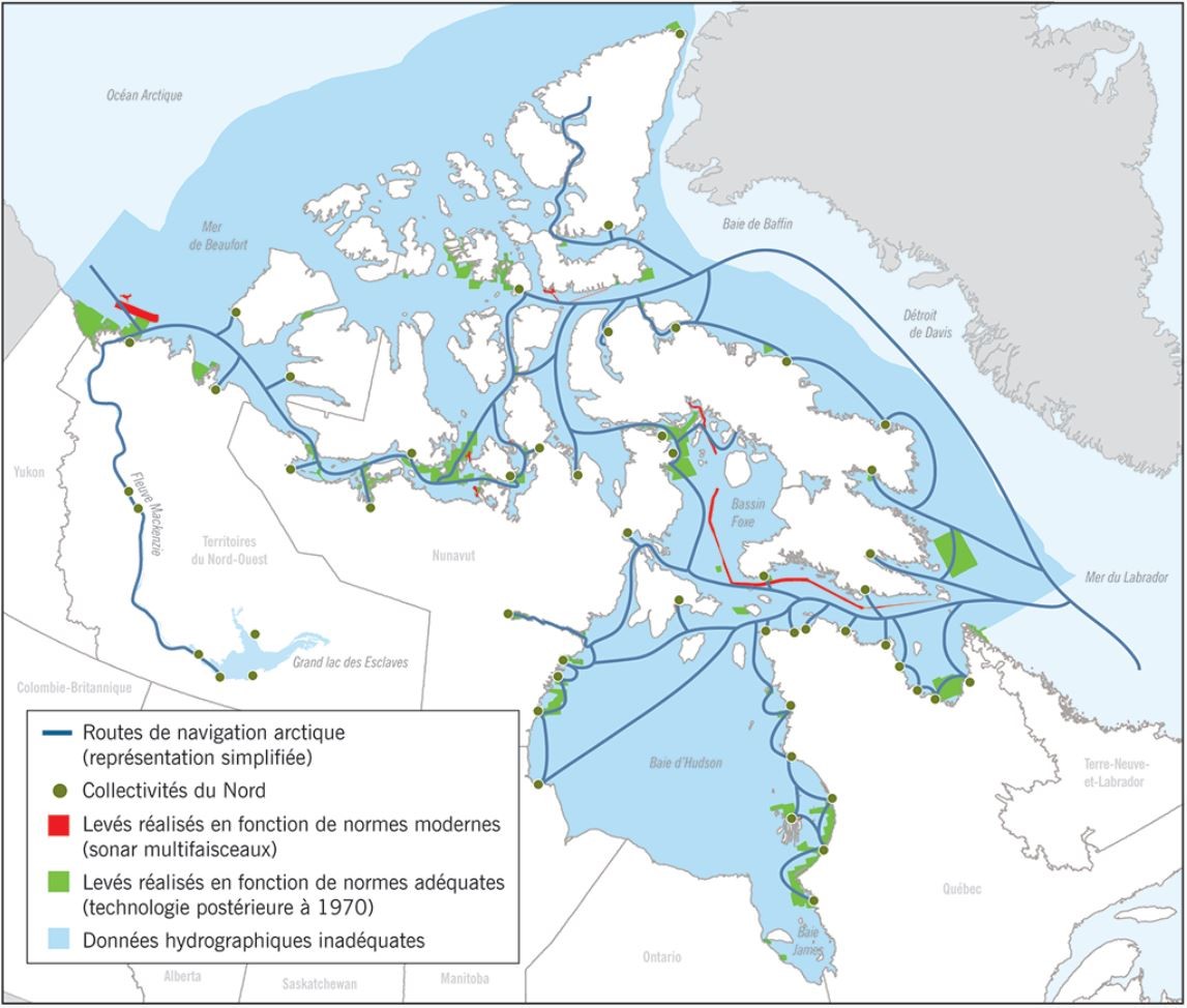 Transports Canada réglemente la navigation des navires canadiens et étrangers dans les eaux territoriales du Canada, y compris les eaux côtières entourant l’archipel Arctique canadien. Le ministère des Pêches et des Océans, par l’entremise du Service hydrographique du Canada, veille à ce que le Canada s’acquitte de ses obligations internationales en offrant des services hydrographiques; la Garde côtière canadienne doit fournir des ressources en recherche et sauvetage maritimes, des services de surveillance du trafic, d’aide au déglaçage et de diffusion d’informations sur la sécurité de la navigation, entre autres. Transports Canada et le ministère des Pêches et des Océans ont le mandat réglementaire de mettre en œuvre diverses mesures d’atténuation des risques afin de réduire la probabilité qu’un navire à passagers s’échoue dans les eaux de l’Arctique et les conséquences relatives à un échouement.