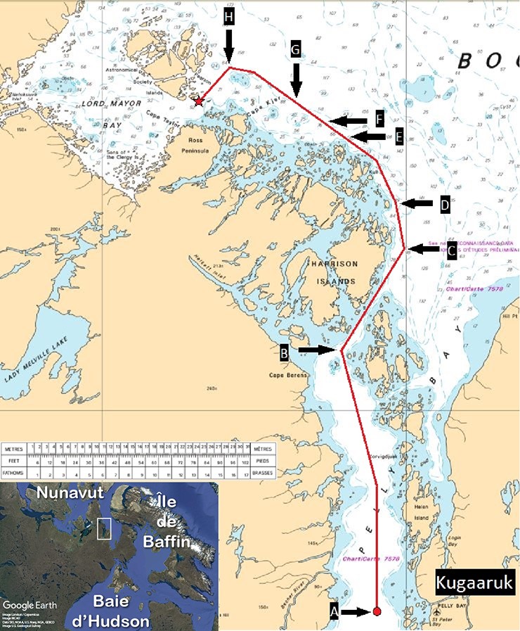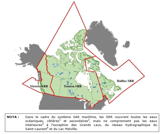 À 12 h 19, le JRCC de Trenton (Ontario), chargé de coordonner les opérations de recherche et de sauvetage (SAR) dans la région où l’échouement a eu lieuNote de bas de page 19, a été informé de la situation et a lancé son intervention 4 minutes plus tardNote de bas de page 20. Les navires de la GCC Pierre Radisson et Amundsen ont été chargés, respectivement à 12 h 25 et 12 h 32, de se rendre immédiatement à la dernière position signalée par l’Akademik Ioffe; la durée prévue avant l’arrivée du Pierre Radisson était de 36 heures et celle de l’Amundsen était de 22 heures. Le Service hydrographique du Canada (SHC) a fourni aux navires de la GCC la position de tous les hauts-fonds potentiels à proximité de l’emplacement de l’échouement (annexe B).