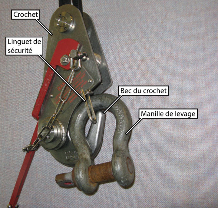 Cette mesure temporaire avait pour objectif de réduire le risque. En pratique, toutefois, elle a fait qu’il était impossible pour l’équipage de vérifier que la manille de levage était bien positionnée sur le crochet, à partir du poste de manœuvre du bossoir et à la noirceur. D’après le Centre canadien d’hygiène et de sécurité au travail, avant de déplacer une charge, l’opérateur doit s’assurer que le dispositif de levage repose bien au creux de la selle du crochetNote de bas de page 3.
