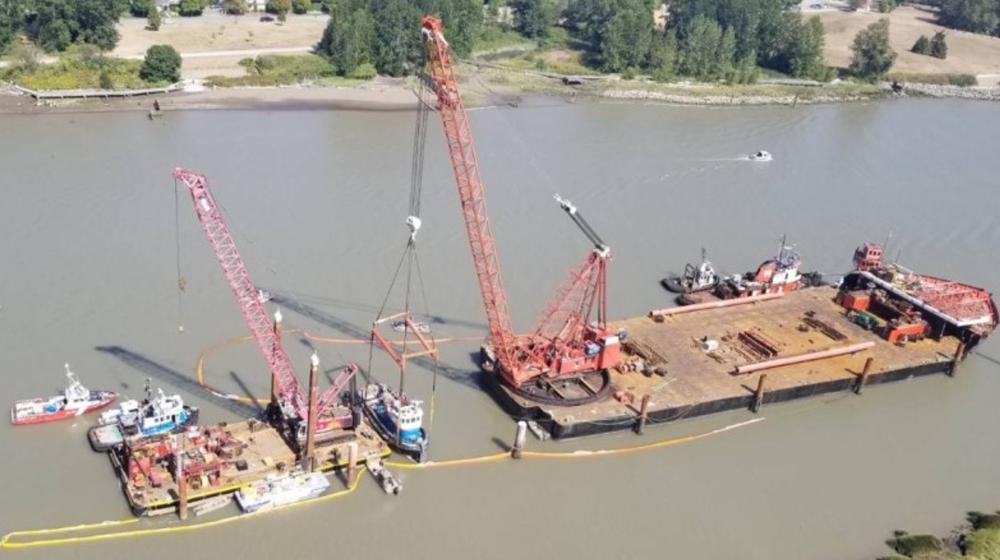 Alors que le remorqueur chaviré et le chaland étaient remorqués au point d'amarrage de YVR, le capitaine du Westview Chinook a communiqué avec le gestionnaire des opérations de Ledcor et avec les Services de communication et de trafic maritimes pour les informer de la situation. Les Services de communication et de trafic maritimes ont alors avisé l'agent d'intervention environnementale de la Garde côtière canadienne (GCC). Ledcor a envoyé un autre remorqueur chercher une barrière flottante et des fournitures d'intervention en cas de déversement aux installations de Richmond pour les amener au point d'amarrage de YVR.
