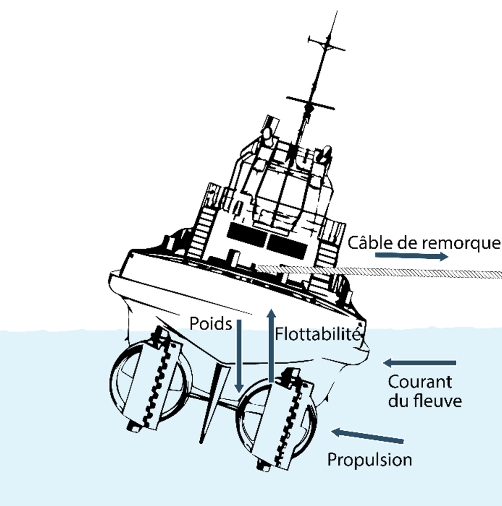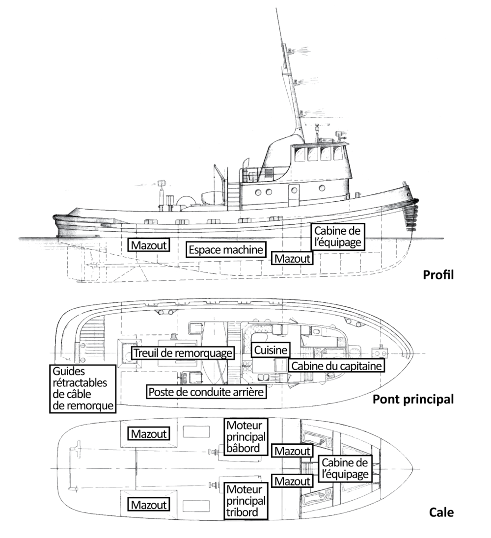 - Facteurs de stabilité : L'équipage doit tenir compte des facteurs pouvant influer sur la stabilité du navire, comme la longueur du câble de remorque, l'emplacement du point de remorquage, le franc-bord du remorqueur, l'intégrité de l'étanchéité à l'eau, et d'autres facteurs ponctuels.