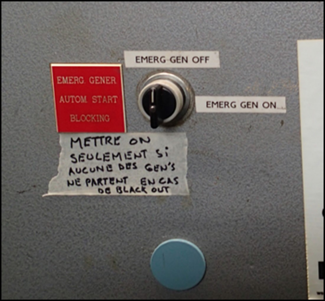 - Dans la salle de commande des machines, certains interrupteurs et voyants actifs étaient recouverts de ruban à conduits (figure G25).