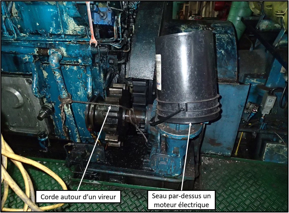 - Un seau avait été déposé par-dessus le moteur électrique de vireur afin de le protéger contre les fuites (figure G21).