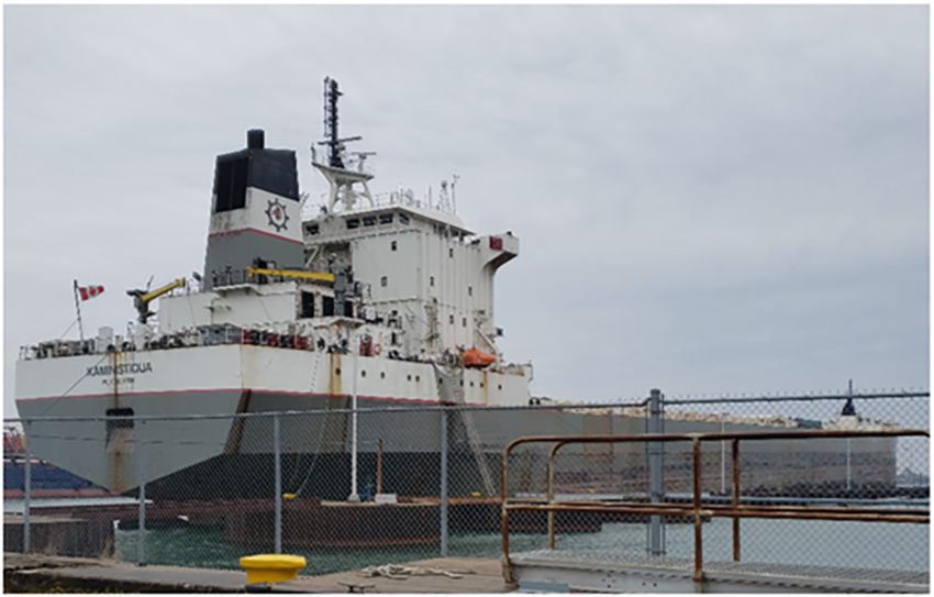 Le Kaministiqua (no 8119285 de l’Organisation maritime internationale, figure 1) est un vraquier d’une longueur de 222,54 m et d’une largeur de 23,17 m, immatriculé au Canada et appartenant à Lower Lakes Towing Ltd. Il a été construit en 1983 et il est muni d’une hélice simple à pas variable installée dans une tuyère Kort orientable et d’un propulseur d’étrave.