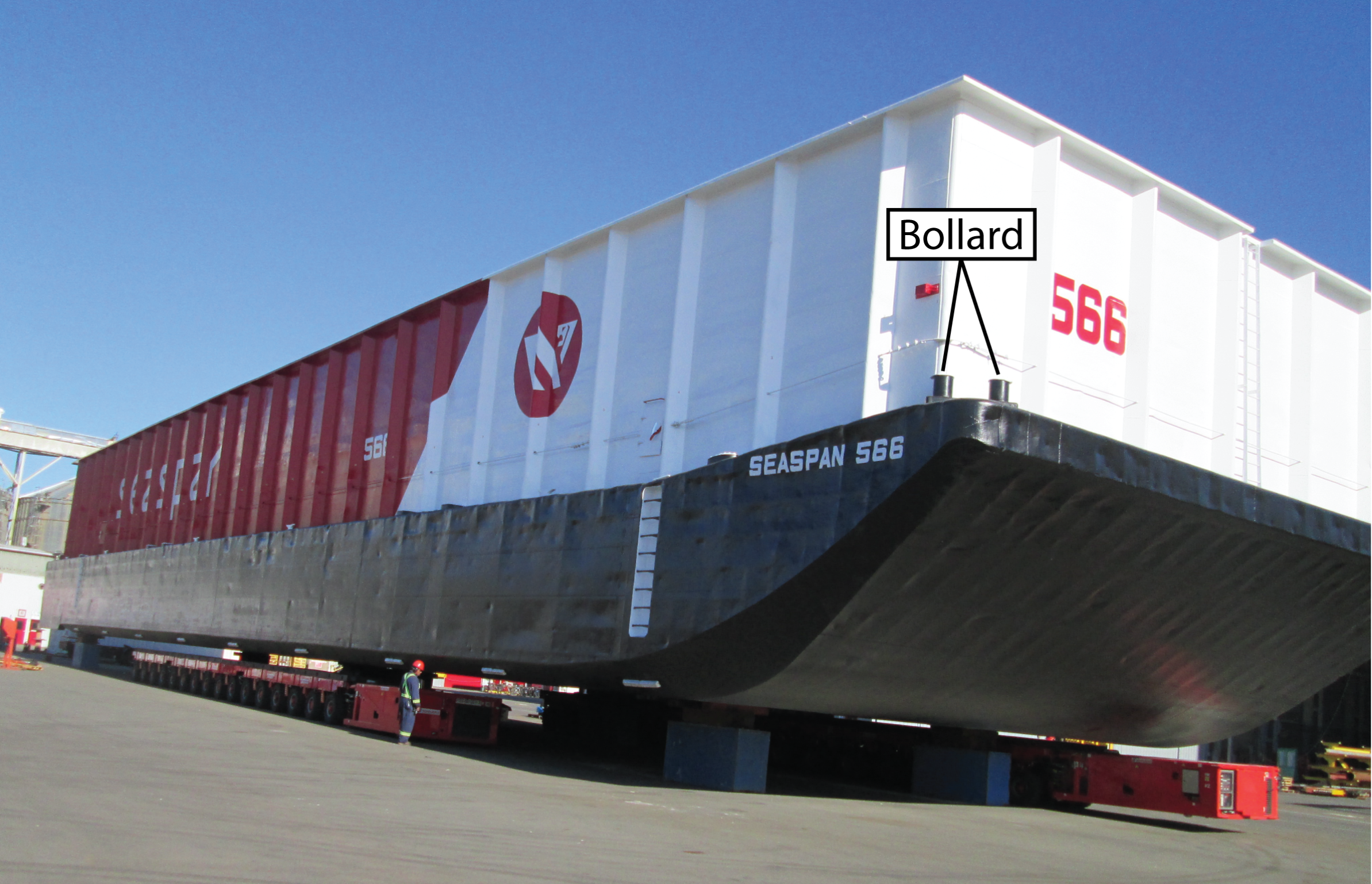 Le Seaspan 566 est un chaland d’acier sans équipage et non propulsé, d’une jauge brute de 883 et ayant une capacité de chargement de 2 500 tonnes courtes (figure 2). Au cours du voyage à l’étude, le chaland transportait un chargement de 2 159 tonnes courtes de copeaux de bois. Son tirant d’eau était de 2,25 m, son assiette arrière était d’environ 20 cm et son gîte sur tribord était d’environ 3 cm.