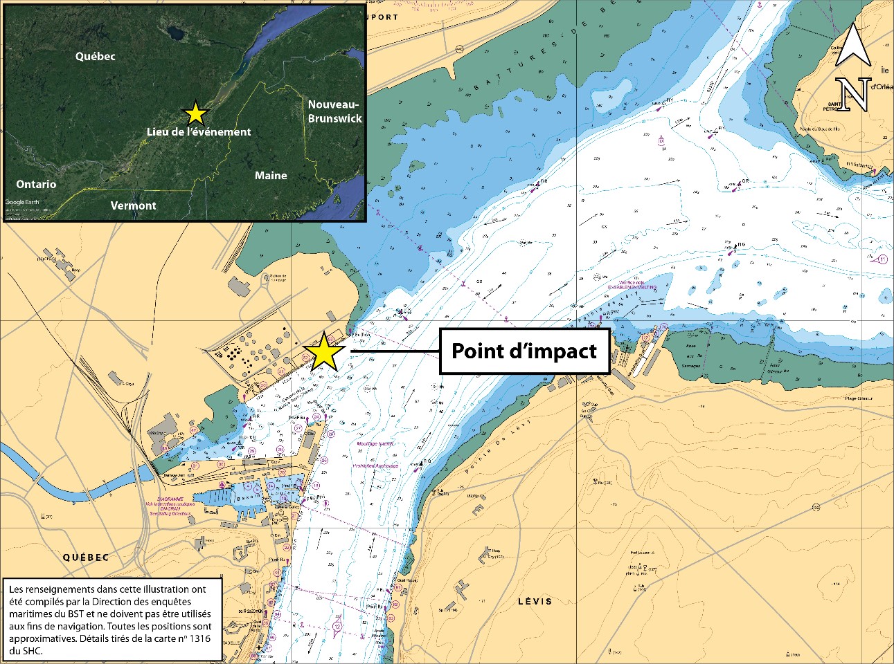 À 6 h 29, le premier officier, qui était l’officier de quart à ce moment, a appelé le capitaine alors que le navire entrait dans les limites du port de Québec (figure 2).