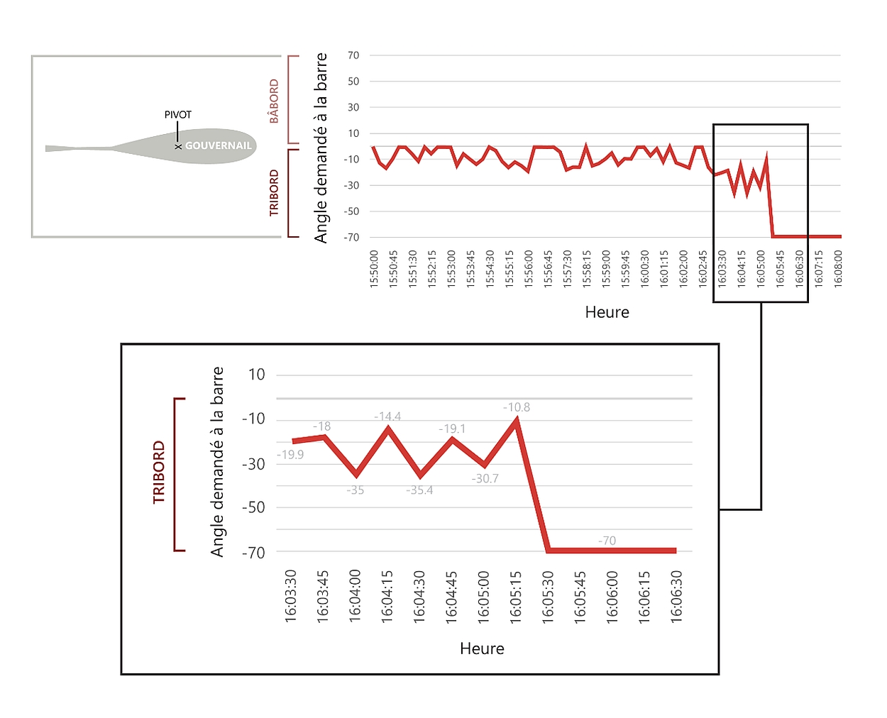 - Si l’équipe à la passerelle n’a pas d’information sur les facteurs pouvant avoir une incidence sur l’efficacité des systèmes de gouverne, il y a un risque que ces facteurs compromettent la sécurité des manœuvres sans que l’équipe le sache.