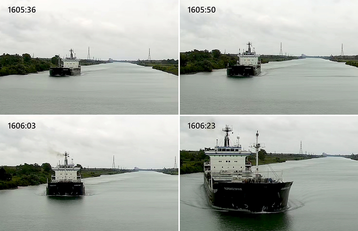 Après avoir quitté l’écluse 7, l’Alanis a poursuivi sa route à vitesse réduite de façon à synchroniser ses rencontres avec le Florence Spirit et 2 autres navires dans la zone entre Port Robinson et Ramey’s Bend.