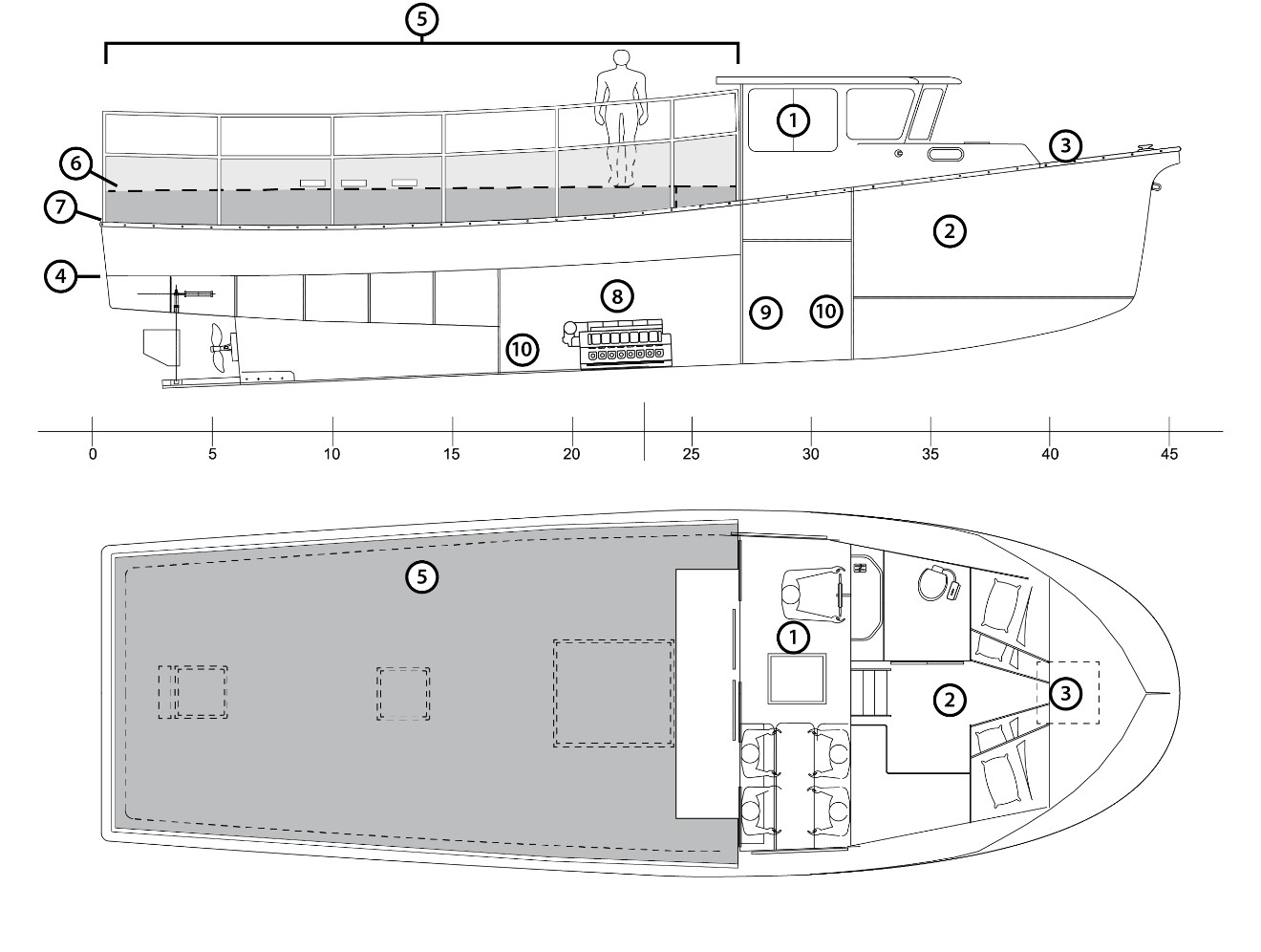 On modifie un bateau de pêche pour diverses raisons, par exemple pour créer plus d’espace d’entreposage ou de pont en allongeant la poupe ou en ajoutant un pont amovible.