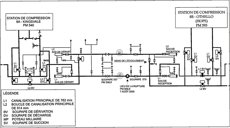- Un outil d'inspection interne, servant à détecter dans la canalisation des anomalies dues à des points durs, n'était pas passé entre les stations de compression 8A et 8B.