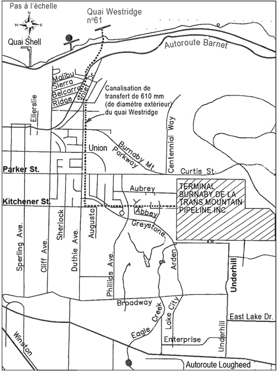 Annexe B - Conduite de transfert du quai Westridge - Inlet Drive, Burnaby (Colombie-Britannique) (Source : illustration du BST)