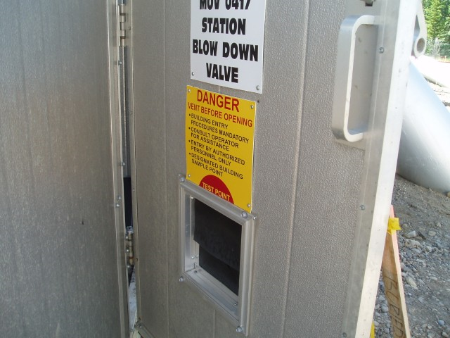 À compter du mois d’août 2011, lorsque le relevé des émissions fugitives a révélé la fuite de la vanne MOV-0409, une étiquette d’émission fugitive de gaz a été fixée sur la face extérieure de la porte piétonne de l’enceinte de la vanne MOV-0417 pour signaler le danger. Toutefois, lorsqu’on a installé une deuxième porte piétonne d’accès à l’enceinte du côté de la vanne MOV-0409, on n’y a pas fixé une autre étiquette d’émission fugitive de gaz. Lorsque les étiquettes d’émission fugitive de gaz ne sont pas installées à toutes les entrées des enceintes dans lesquelles une vanne présente une fuite, les employés d’entretien peuvent sous-estimer les dangers potentiels présents, ce qui augmente les risques de blessures et de décès auxquels ils sont soumis.