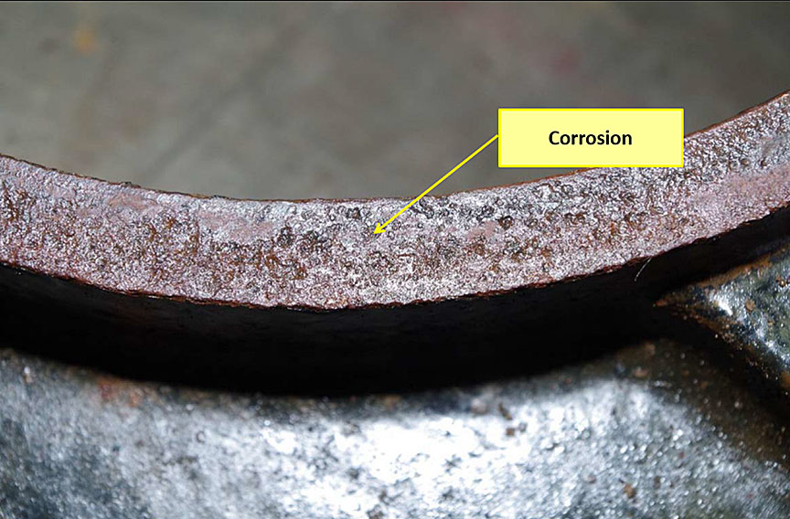 - La corrosion du siège de la vanne était telle qu'il n'était pas possible d'obtenir une étanchéité parfaite (figure 10).