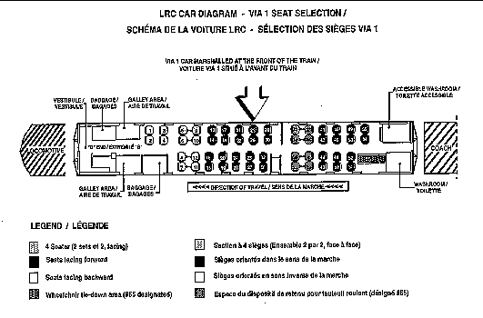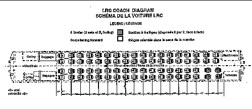 Il y avait deux types de voitures au sein du VIA 66 : une voiture-bar LRC et cinq voitures LRC. Les figures 8 et 9 donnent un plan et des dessins de profil des deux types de voitures. La voiture-bar pouvait accueillir 54 voyageurs et les voitures, 72 chacune.
