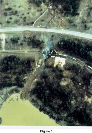 Le terrain est montagneux et densément boisé. La route, construite à l'origine en 1948, a été relocalisée en 1952 et en 1960. Chaque fois que la route a été relocalisée, on l'a rapprochée de l'emprise ferroviaire (voir la Figure 2). La plate-forme et le talus de la route sont constitués de matériau de remblai indigène placé sur le sol primaire. La pente du talus de la route est d'environ 1,5 pour 1. Une voie de service de 3 m (10 pieds) de largeur se trouve entre la plate-forme de la voie ferrée et le pied du remblai de la route.