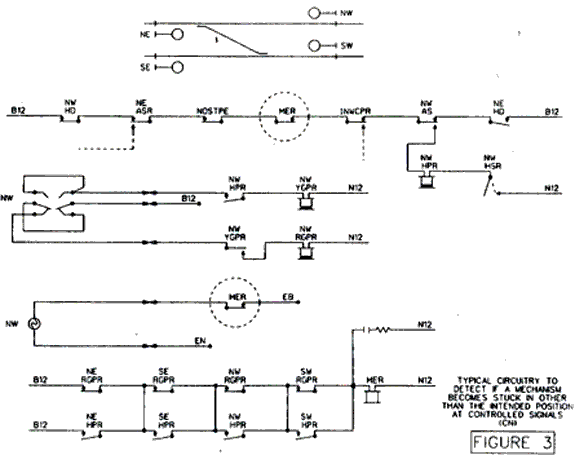 Les circuits du répétiteur du mécanisme de signalisation et les circuits d'approche à enclenchement fonctionnent de façon que, si le signal 2328S affiche une indication d'arrêt absolu, le répétiteur du feu rouge (relais 2328S-1RP) soit excité et excite le relais d'approche à enclenchement (2328S-S1AS). Si une des lentilles du signal 2328S affichait autre chose qu'un signal rouge, le circuit actionnant le répétiteur du feu rouge serait ouvert et le répétiteur du feu rouge deviendrait désexcité. Si cela se produisait, le relais AS se désexciterait et resterait ainsi jusqu'à ce que le répétiteur du feu rouge soit excité de nouveau et qu'un train occupe la voie de gare (relais 1TP) ainsi que la voie suivante au-delà de la voie de gare, ou que le signal soit annulé (par le CCF), que le répétiteur du feu rouge soit excité et que la minuterie AS fonctionne pendant tout son cycle. Le relais AS étant désexcité, le relais d'automaintien d'itinéraire est désexcité, si bien que les relais à enclenchement sont désexcités. Cette suite d'événements fait en sorte que le canton contrôlé est verrouillé.