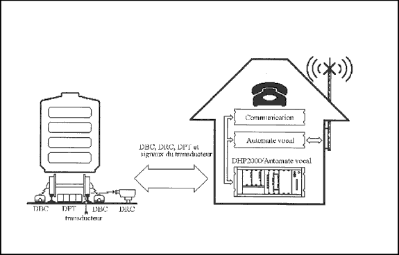 Le DBC capte l'énergie infrarouge rayonnante émise par le roulement au moment où celui-ci passe devant le détecteur. L'énergie thermique est convertie en un signal électrique proportionnel à la quantité de chaleur par rapport à la température ambiante. La température ambiante est déterminée grâce à l'analyse du fond des wagons qui passent. Le signal électrique est envoyé à une unité de traitement des données (UTD) placée dans une guérite adjacente, en l'occurrence une structure qui abrite les différents appareils électriques et éélectroniques nécessaires à l'exploitation du réseau ferroviaire. Quand le train a dépassé le site, les données, dans lesquelles les indications sur les roues chaudes et les pièces traînantes sont signalées, sont envoyées au bureau pour interprétation. Il s'agit de données brutes « non interprétées » qui sont envoyées au bureau où l'on fera l'analyse des degrés de chaleur du matériel. Si la quantité d'énergie relevée par le DBC dépasse les valeurs préétablies, l'indication appropriée est générée. Cette indication est immédiatement relayée à l'écran de l'ODBC (où elle est affichée sous forme de graphique gradué en millimètres) et est relayée à l'équipe du train par le système d'AWA, qui envoie un message radio par l'intermédiaire de l'automate vocal (voir la figure 13).
