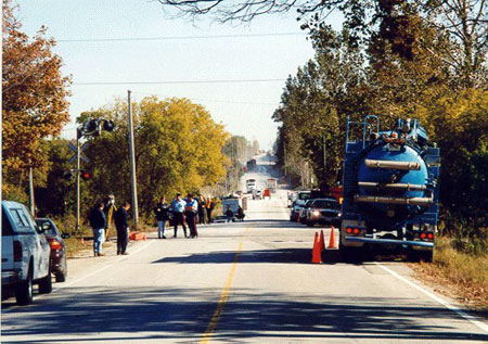 Pour installer les câbles de fibre optique aux passages à niveau, il faut forer horizontalement sous la surface de la route et insérer une canalisation. Pour éviter que le forage n'endommage d'autres conduites dans le secteur, il faut déterminer leur emplacement avant le début du forage. La 360networks a conclu un contrat de sous-traitance avec la A. van Egmond Construction Ltd. d'Orangeville (Ontario) pour l'installation de la canalisation sous le chemin Fourth Line. À son tour, la A. van Egmond Construction Ltd. a retenu les services de la Ontario Excavac Inc. de Milton (Ontario) pour la localisation des conduites déjà en place au moyen d'un processus non destructif d'excavation utilisant de l'eau à haute pression.