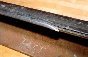 L'analyse effectuée par le Laboratoire technique du BST (rapport LP 71/01) montre que le rail comportait une bavure du côté intérieur du champignon qui atteignait jusqu'à 12 millimètres (mm) d'épaisseur. Il n'y avait aucune bavure du côté extérieur du rail.