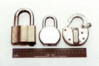 On a fait parvenir pour examen au Laboratoire technique du BST un échantillon de cadenas d'aiguillage neufs et usagés de plusieurs fabricants, dont les chemins de fer se servent couramment (rapport no LP 046/01, annexe B) :