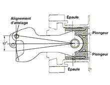 Le groupe de traction est parti de l'atelier diesel du triage Walker avec deux locomotives isolées qui étaient placées derrière les locomotives de commande. Ces deux locomotives isolées avaient fait l'objet de travaux d'entretien à l'atelier diesel du triage Walker, à Edmonton, et elles étaient régulièrement transférées au train 442 pour travailler au triage Sarcee, à Calgary. Les deux locomotives étaient des locomotives polyvalentes (GP 9) affectées au service marchandises, et servaient aux manoeuvres dans le triage et sur les voies industrielles. Ces deux locomotives n'étaient pas munies d'attelages à dispositif de centrage ou de butées de traverse danseuseNote de bas de page 8 (figure 2, figure 3 et figure 4). Les locomotives sans attelages à dispositif de centrage ou de butées de traverse danseuse permettent un plus grand débattement des attelages dans les courbes serrées des triages et des voies industrielles. La formation du groupe de traction du train s'est faite conformément au Locomotive Engineer Operating Manual et aux IGE du CN, lesquels exigent que les locomotives isolées ou hors de service soient placées immédiatement derrière les locomotives de commande.