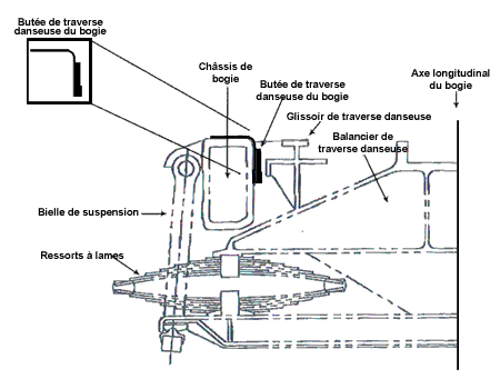 On doit appliquer des butées de traverse danseuse sur les locomotives de types GP et « F » qui sont dépourvues de dispositif de centrage associé à leurs attelages à goupilles, avant que ces locomotives ne soient soumises aux forces de compression considérables consécutives à une application vigoureuse du frein rhéostatique.