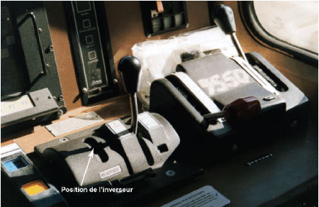 L'inverseur qui contrôle les mouvements en marche avant et en marche arrière des locomotives est placé dans le pupitre de commande de la locomotive. Le pupitre de commande de la locomotive est un secteur dans lequel les commandes des freins à air, le levier de l'inverseur, la manette des gaz et le frein rhéostatique sont montés et sont placés à la portée du mécanicien. Les manomètres et certains interrupteurs de commande sont aussi placés dans le pupitre de commande. Certains pupitres de commande sont à la verticale, à côté du mécanicien, alors que d'autres, comme celui de la locomotive CPR 9550, ont une disposition horizontale, comme à la surface d'un bureau.