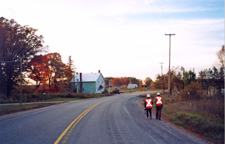 Situé dans le comté de Renfrew, River Road est un chemin auxiliaire rural à deux voies à chaussée unique qui longe la rive sud de la rivière des Outaouais. La circulation moyenne qu'on y enregistre est de l'ordre de 1000 véhicules par jour. Quand on quitte le village de Sand Point et qu'on roule vers l'ouest en direction de Castleford, un panneau de signalisation indique la fin d'une zone dans laquelle la vitesse est limitée à 60 km/h. Quand la vitesse maximale autorisée n'est pas indiquée sur les routes rurales de l'Ontario, elle est de 80 km/h.