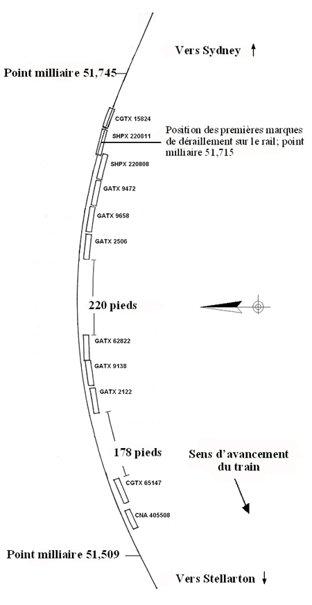 Annexe A - Schéma montrant les positions approximatives des wagons déraillés