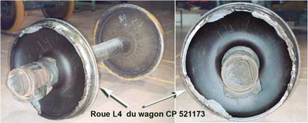 Les inspections de wagons sont faites conformément au Règlement concernant l'inspection et la sécurité des wagons de marchandises, approuvé par le ministre des Transports. Quand un inspecteur accrédité est de service, les inspections de sécurité doivent avoir lieu aux emplacements désignés à cette finNote de bas de page 16. Durant une inspection de sécurité, on examine et vérifie tous les éléments des wagons, en utilisant au besoin des appareils de mesure et des jauges. L'inspecteur n'utilise des appareils de mesure pour vérifier les roues que s'il trouve une roue qui semble ne pas être conforme aux normes. Il n'est possible d'identifier que des défauts superficiels des roues, comme de l'écaillage ou de l'exfoliation, au moment de ces inspections visuelles. Aux endroits où il n'y a pas d'inspecteur accrédité de matériel remorqué, l'inspection est faite par l'équipe de conduite du trainNote de bas de page 17.